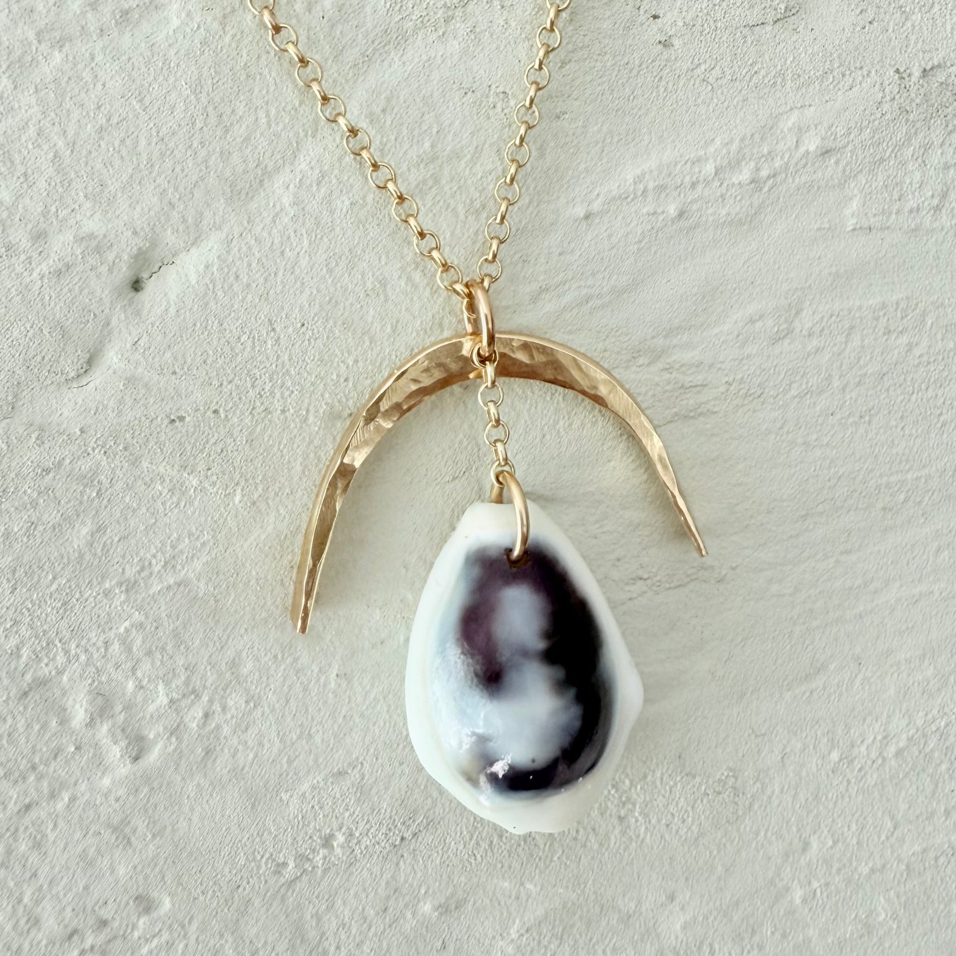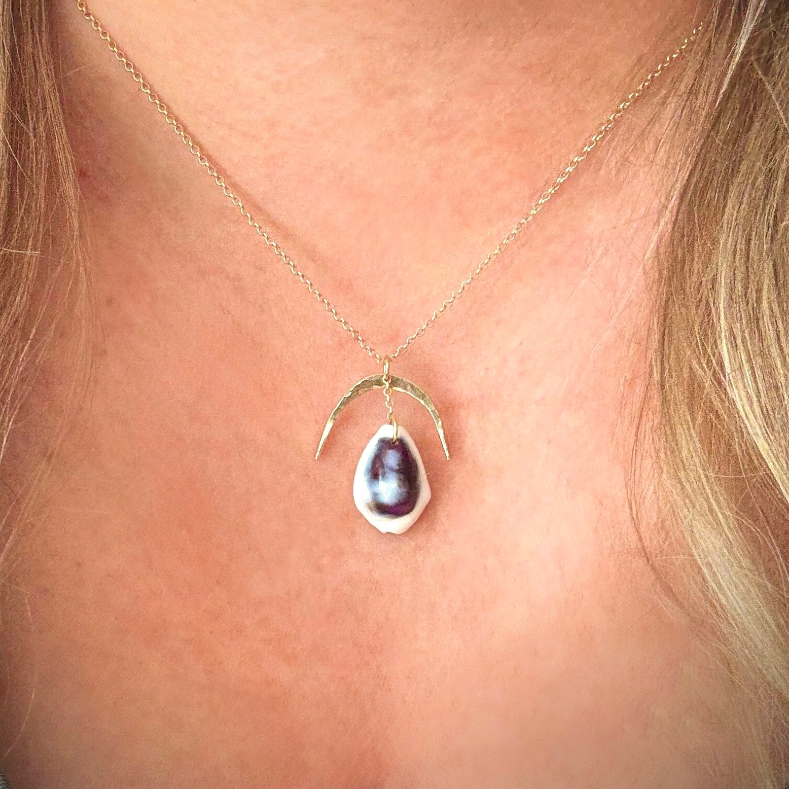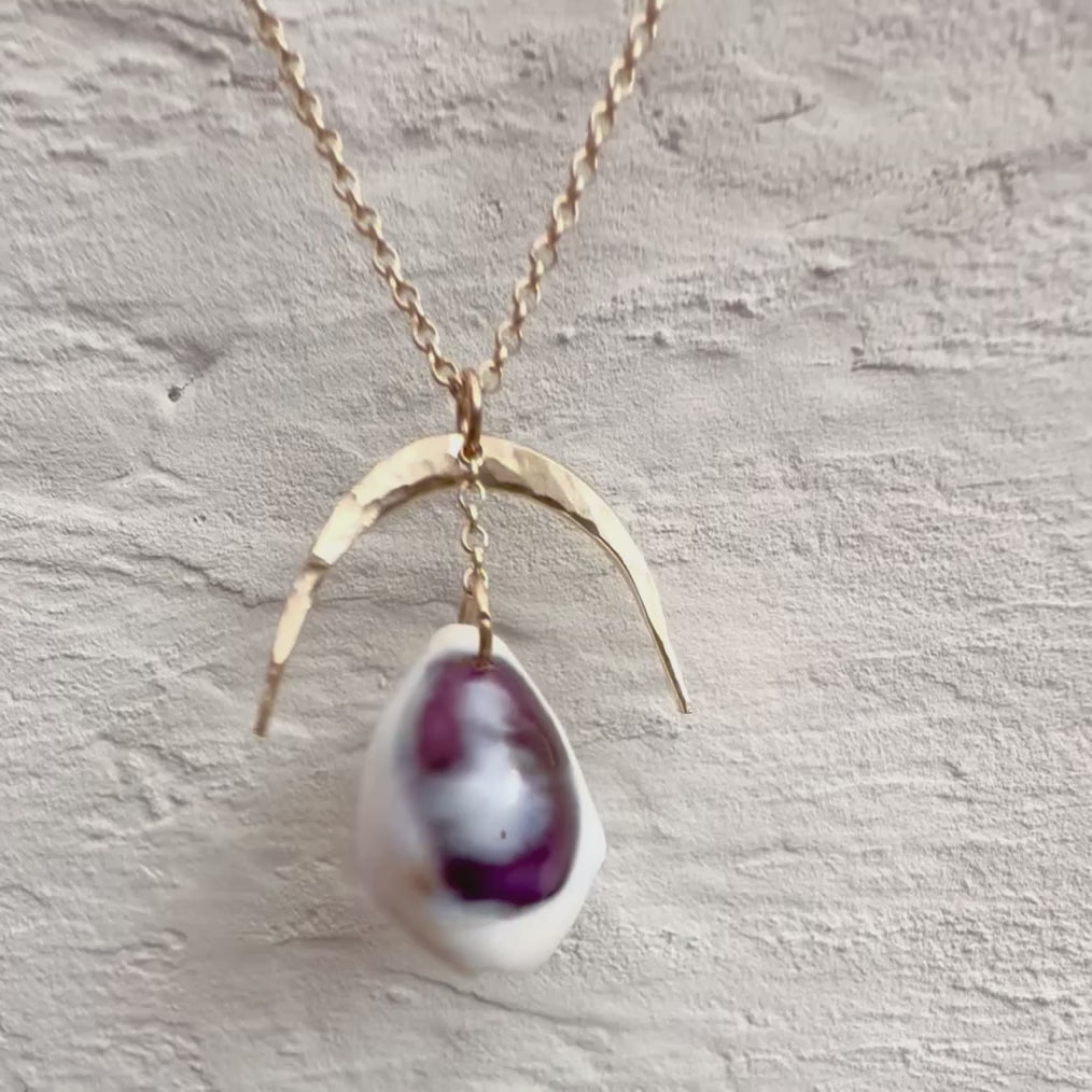 Hand crafted in solid 925 sterling silver & USA manufactured 14k gold filled materials in the Pacific Northwest. The Cora Purple Cowrie Shell Necklace features natural purple top cowrie shells with a thick hand formed and hammered arch. Ready for a tropical vacation, beach wedding, or everyday wear, this beachy beauty will become a summer time favorite!