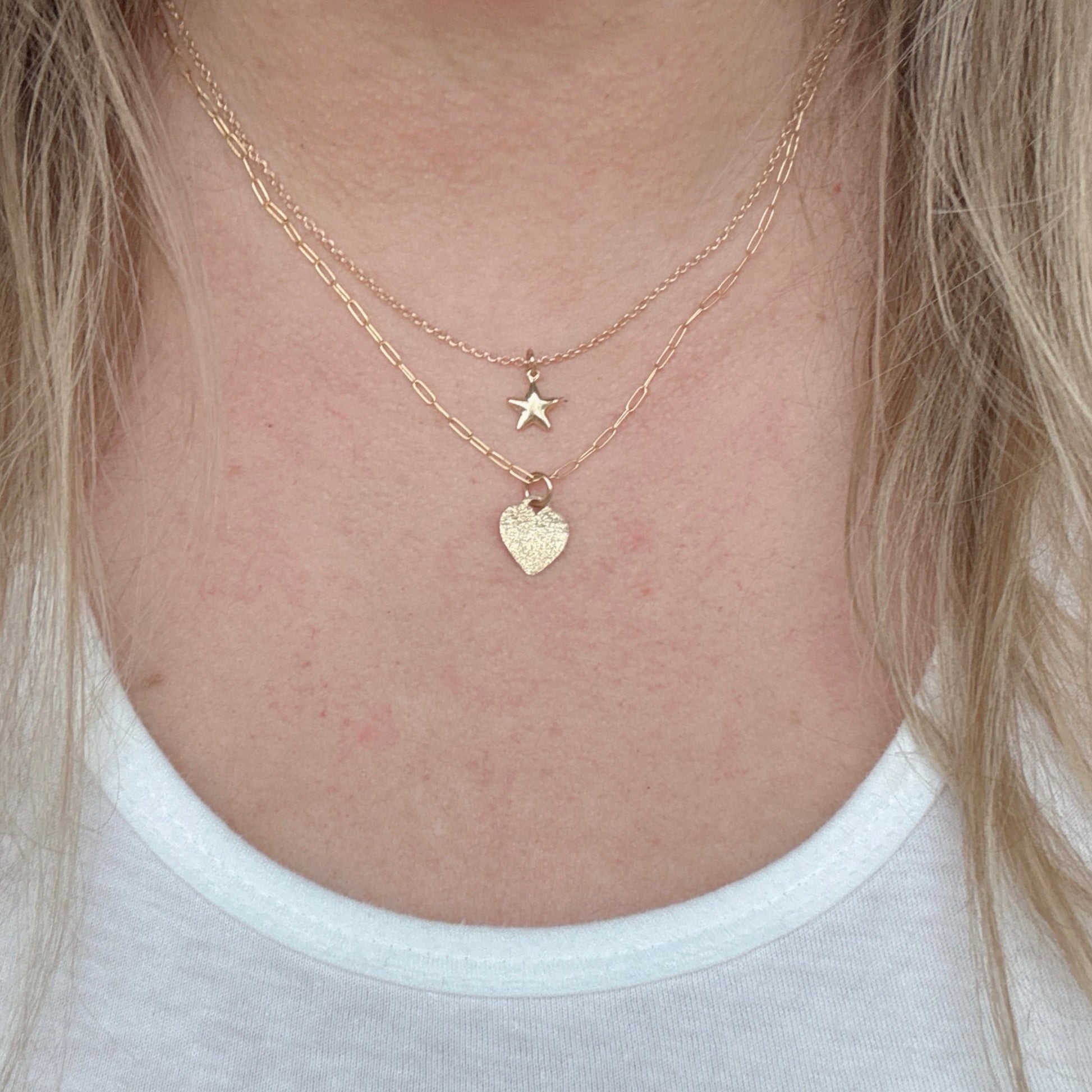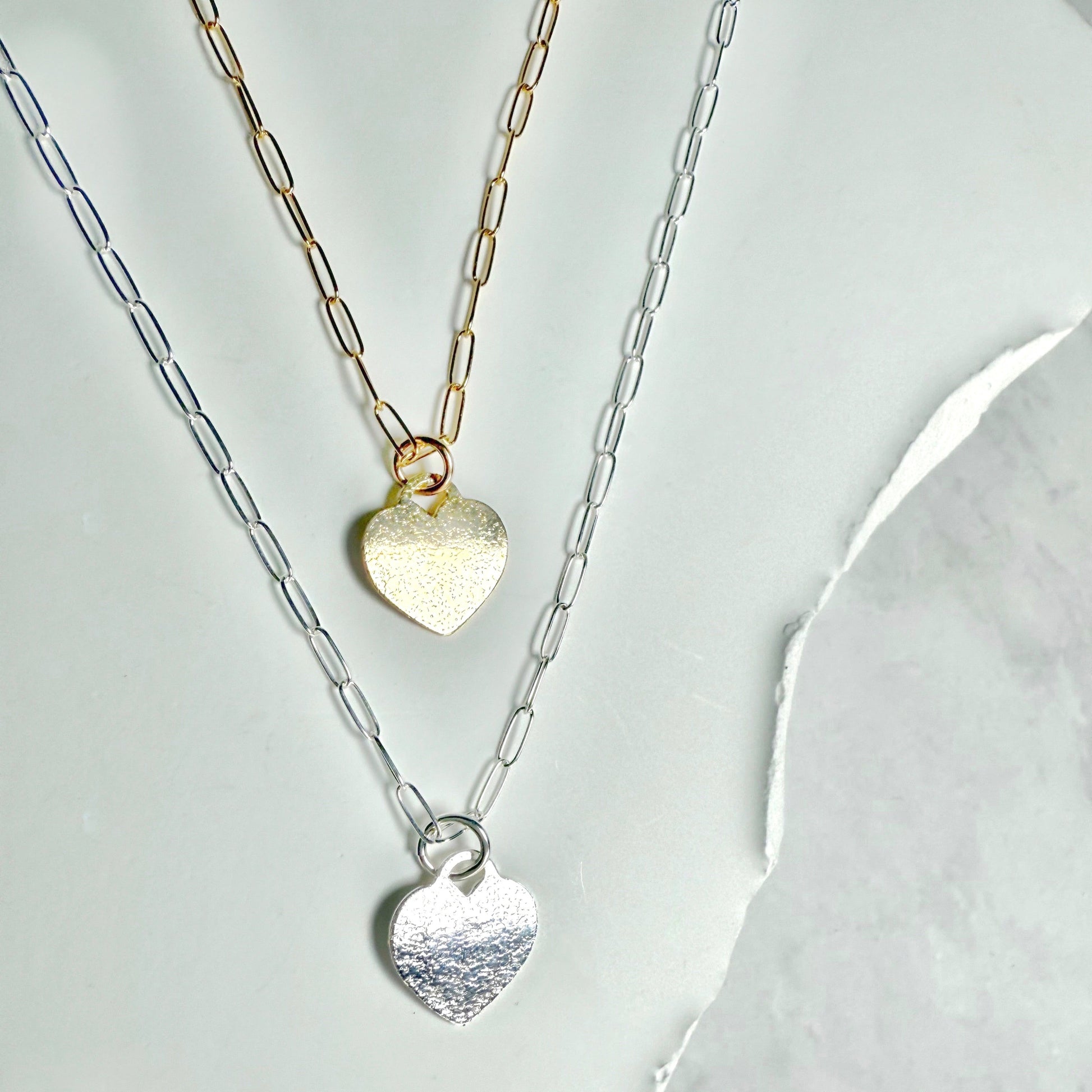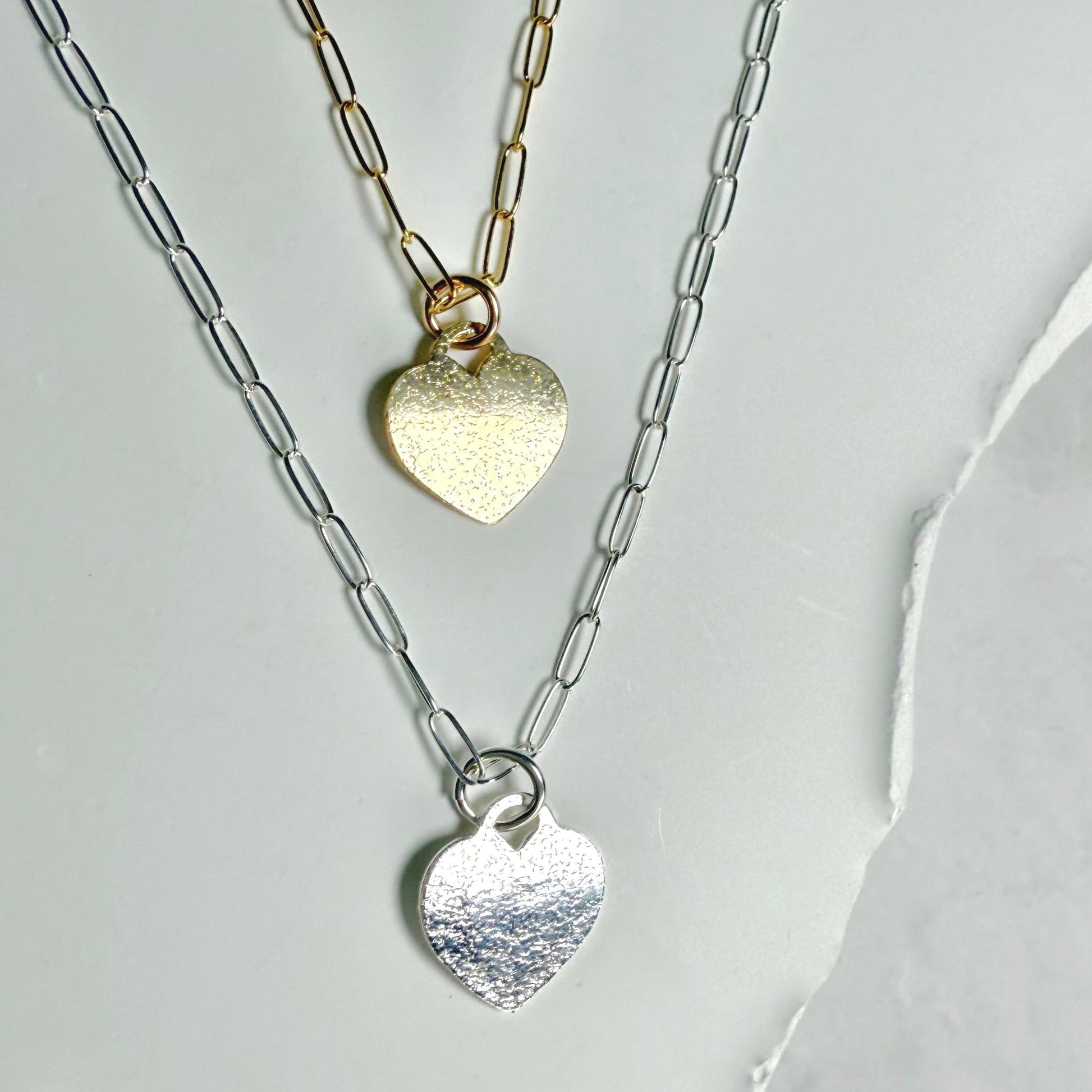 The Croix Heart Necklace has a charm textured using sand to give it its unique look while it glistens hanging from a delicate paperclip chain. This adorable little necklace is loved by all ages, so makes an excellent gift!