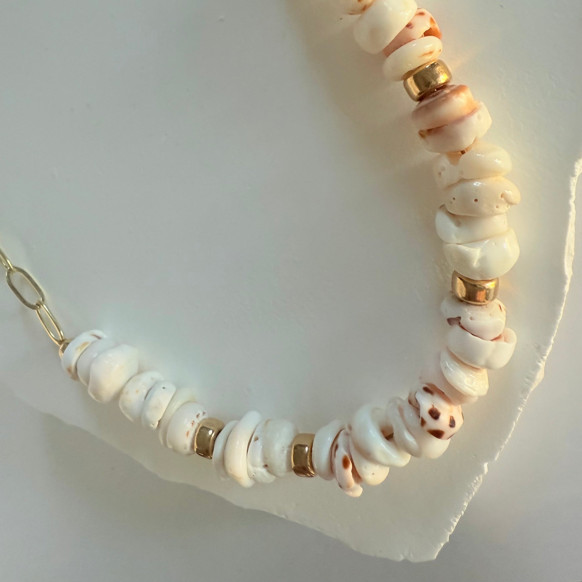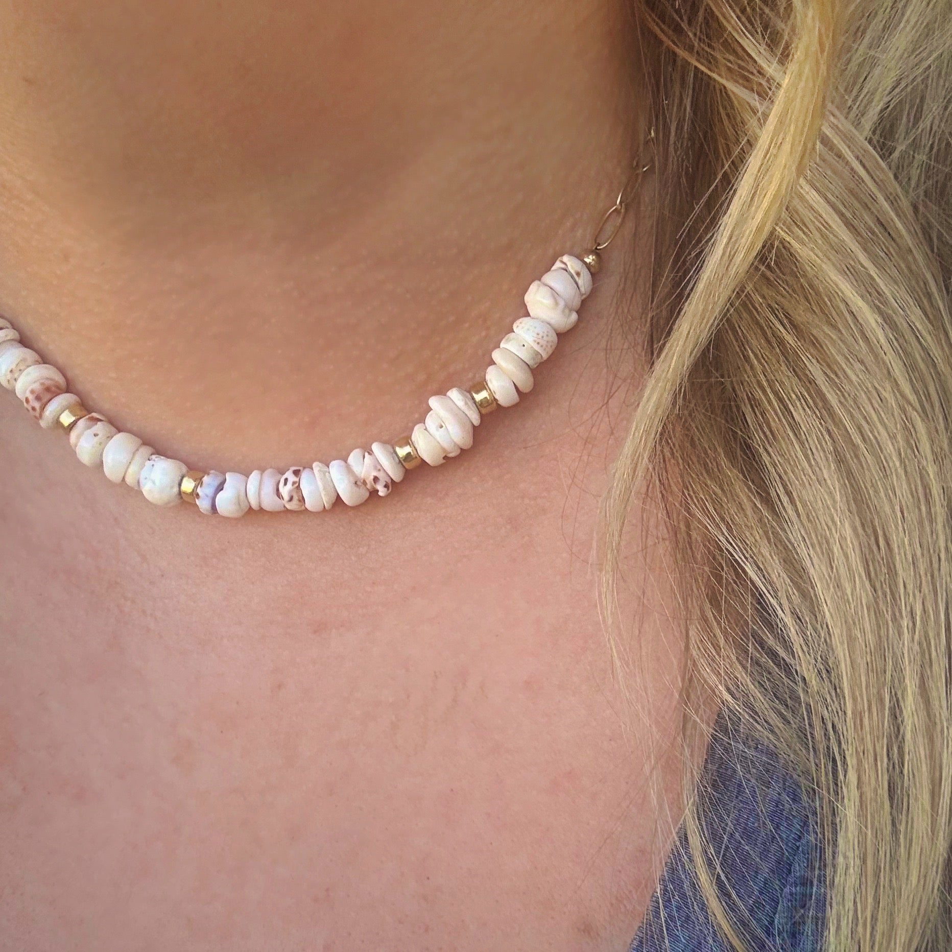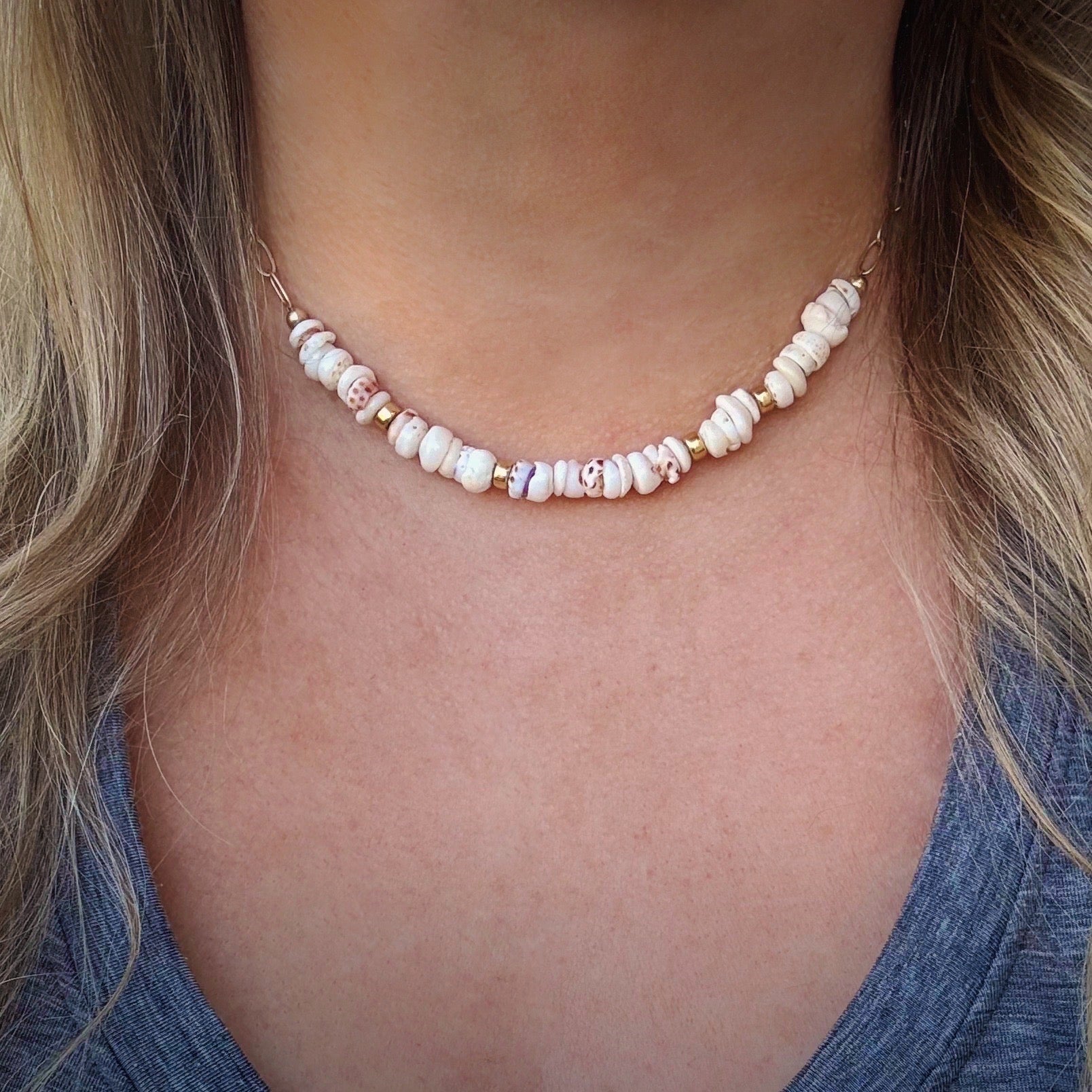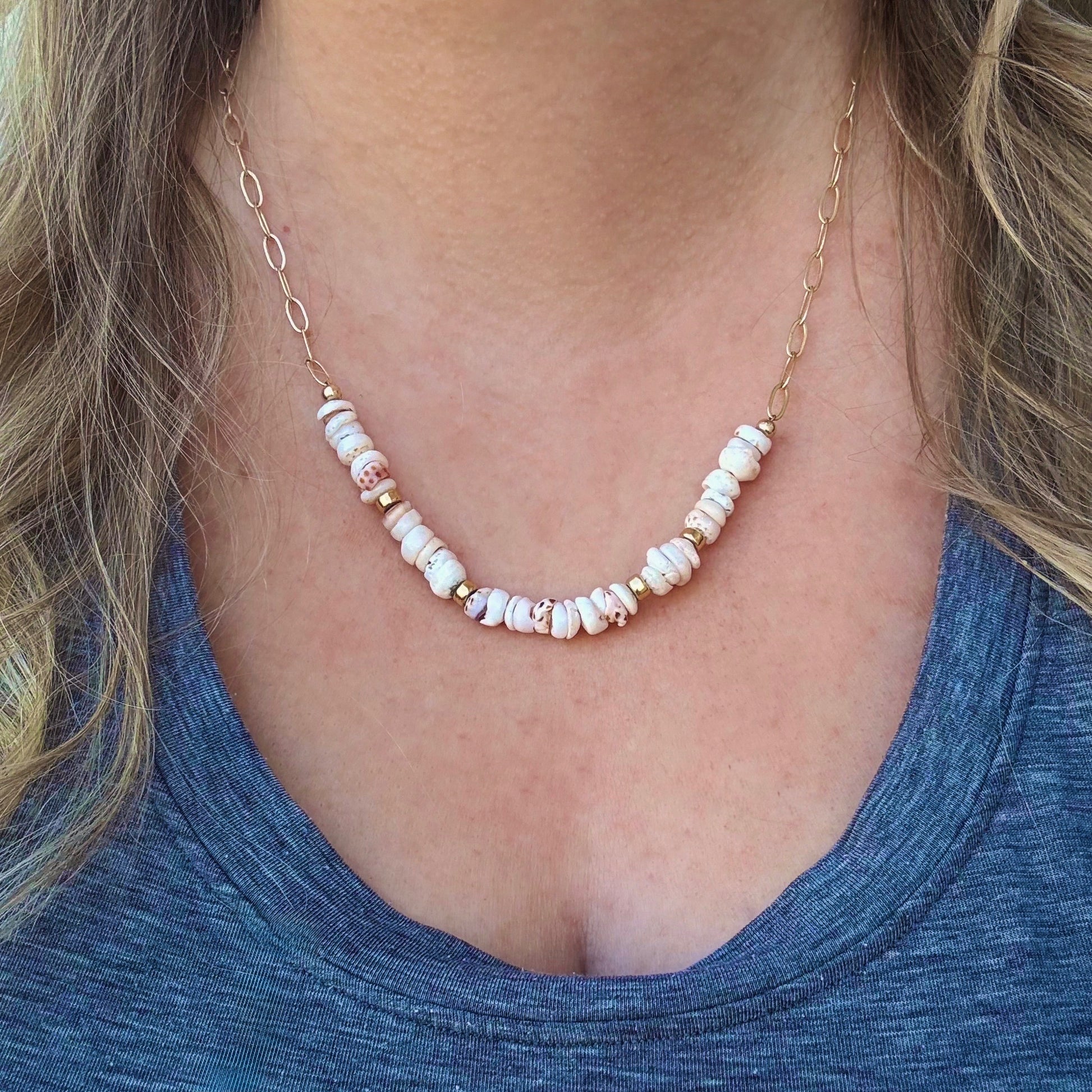 Hand crafted in solid 925 sterling silver & USA manufactured 14k gold filled materials in the Pacific Northwest. The Kai Puka Shell Necklace features natural puka shells with quality metal spacer beads attached to a shiny flat paperclip chain, giving it the perfect amount of shimmer. For a tropical vacation, beach wedding, or everyday wear, this beachy beauty is sure to become a summer fav!