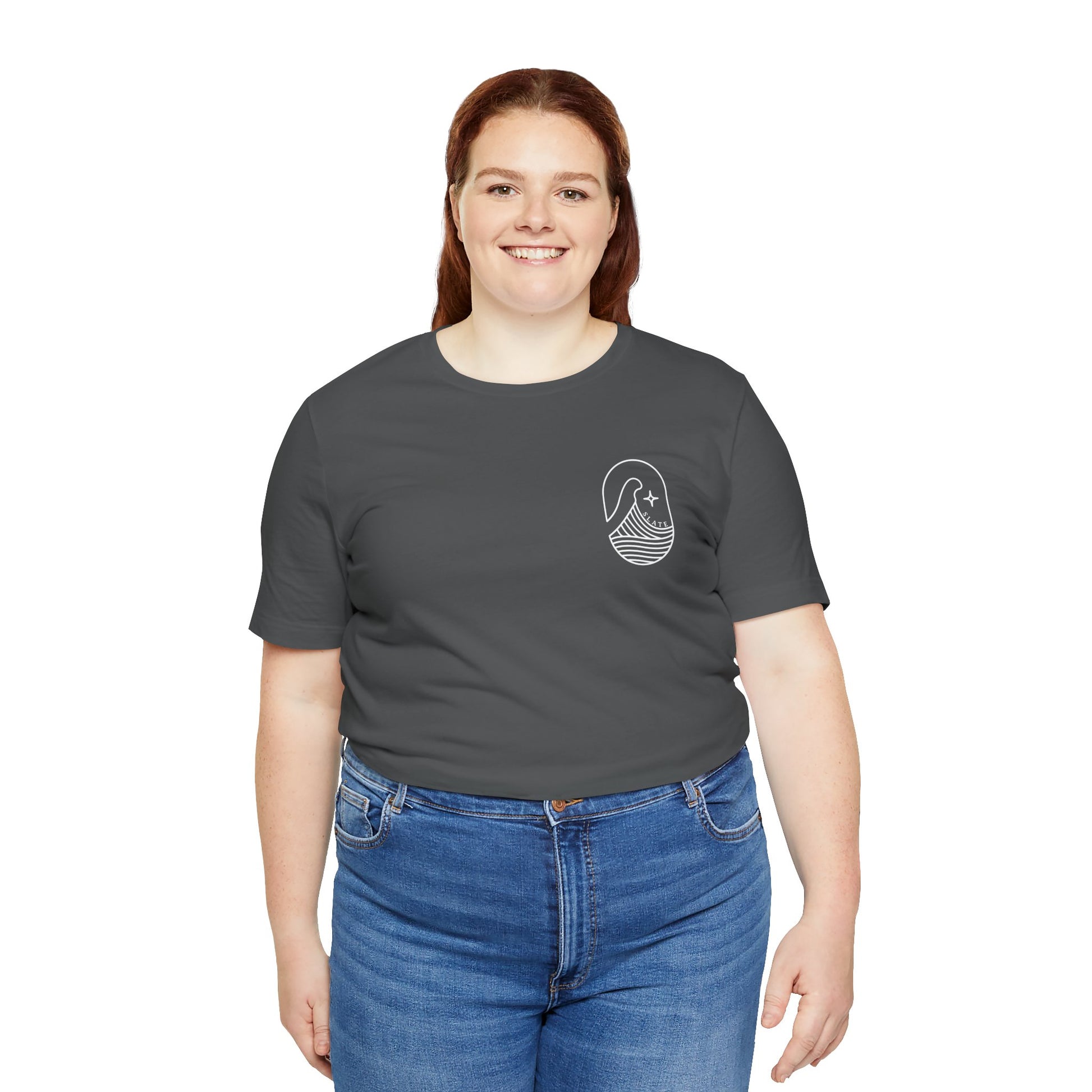 A comfy lightweight tee shirt featuring a small Slate Jewelry Co icon on the front.