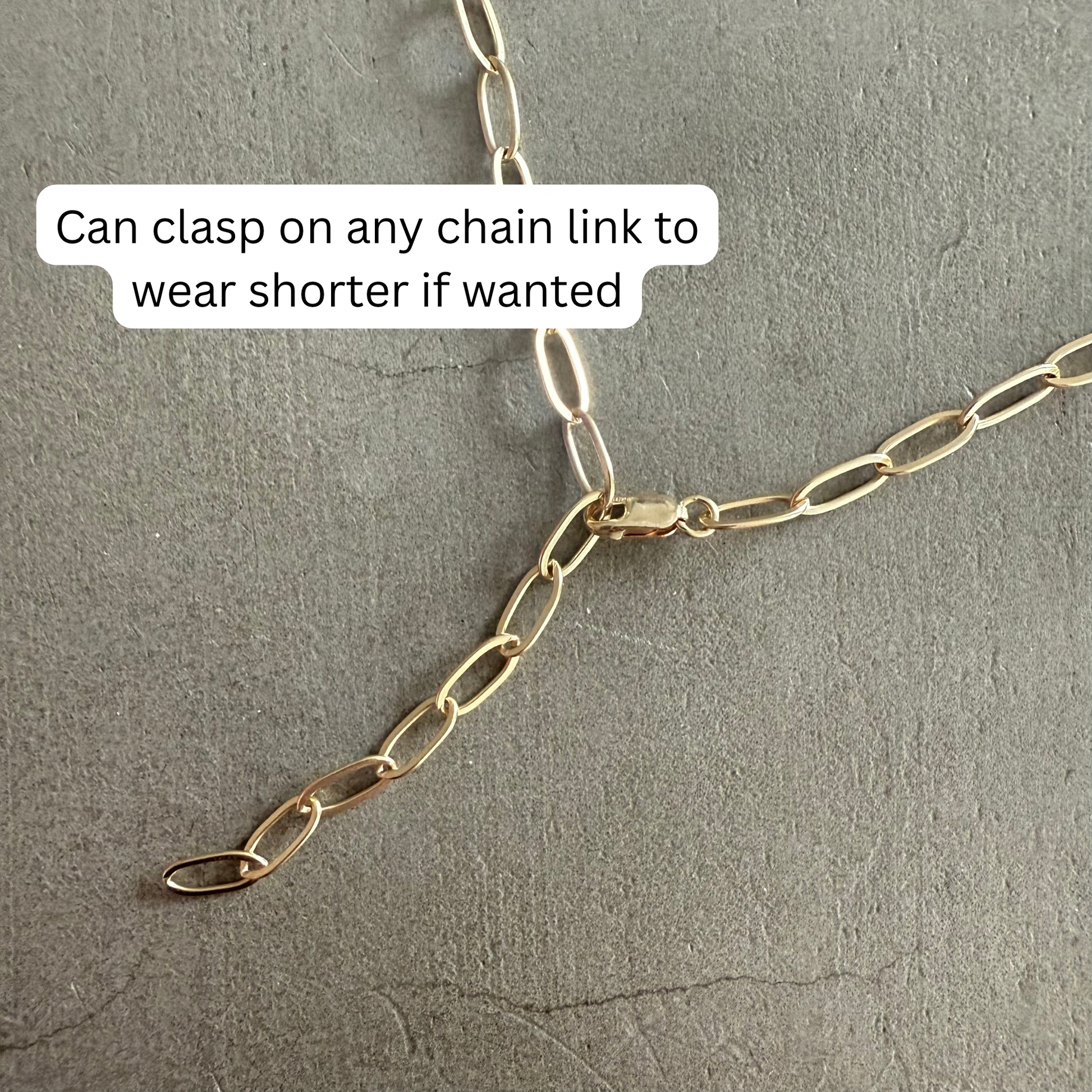 - This bracelet can be clasped on any of the chain links for easy shortening